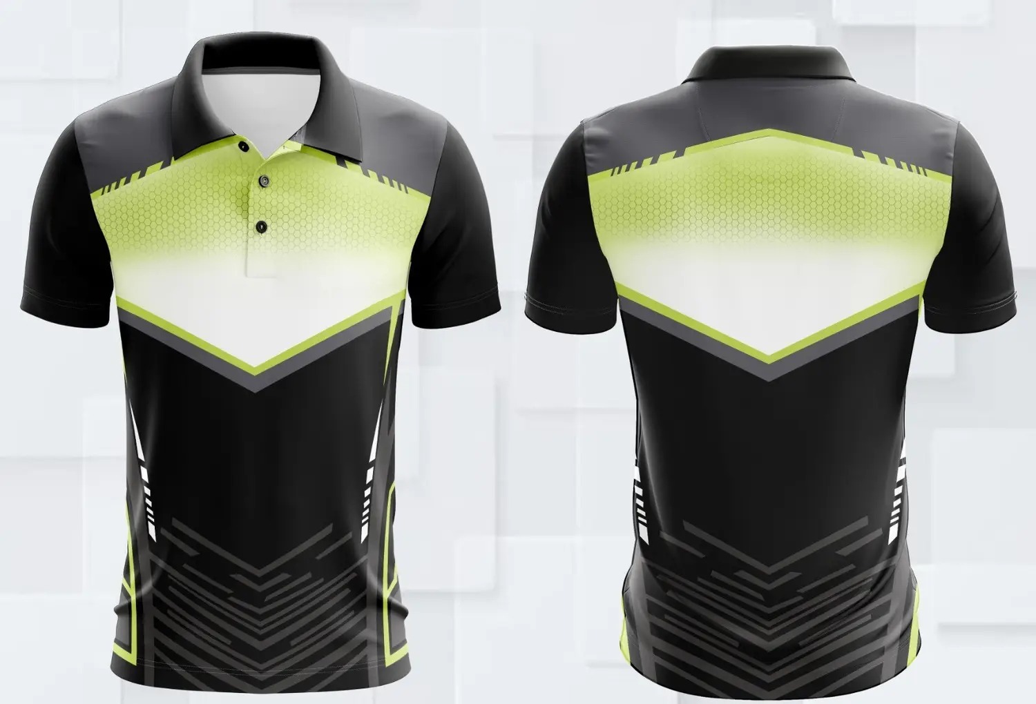 Elevate your active wardrobe with the PYNAK Neon Hex-Strike Polo. Featuring a futuristic hexagonal gradient design and breathable micro-mesh fabric, this shirt delivers peak performance and striking style for sports, e-sports, or casual wear.
